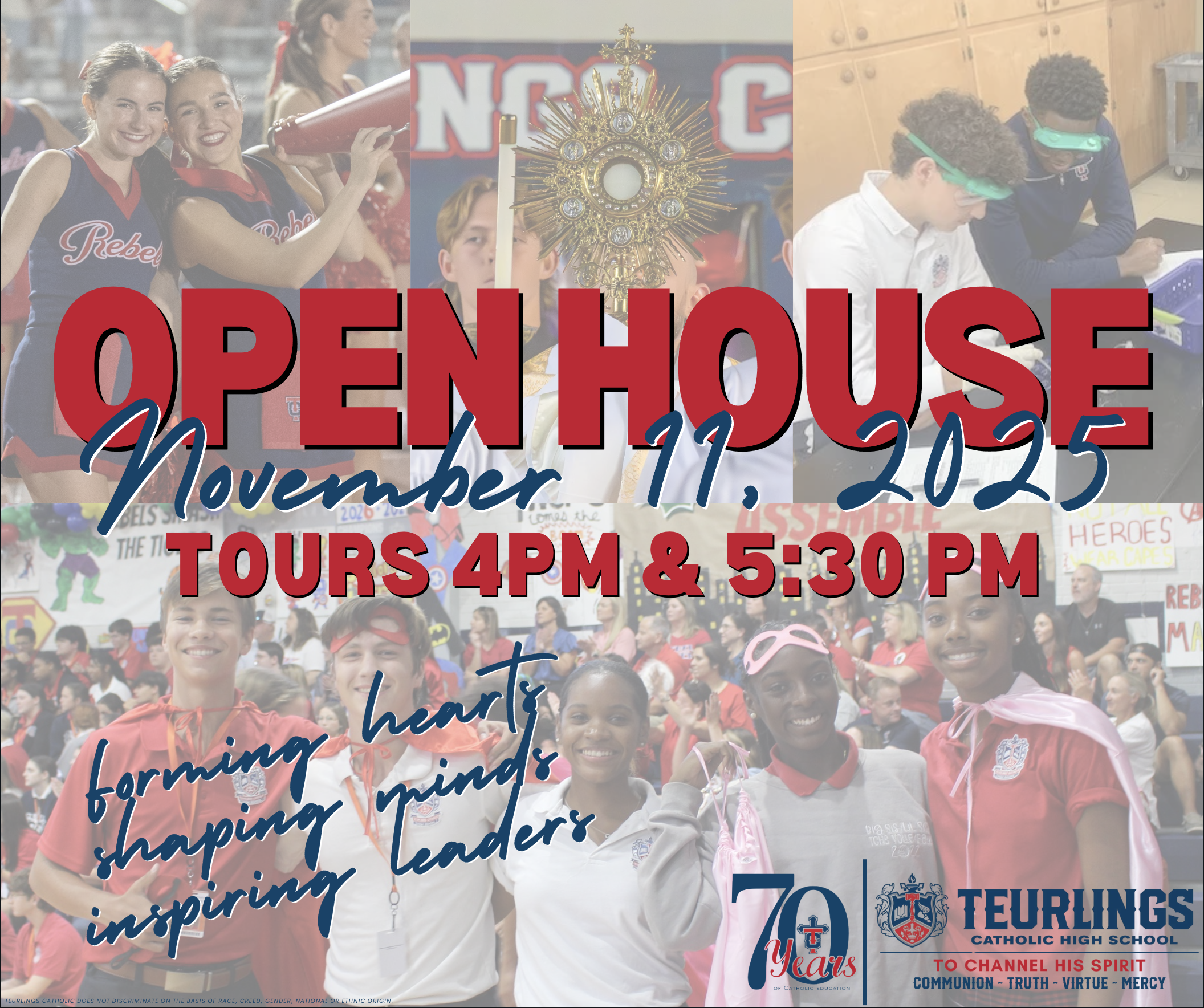 Parents, students, and friends are invited to explore all that Teurlings Catholic High School has to offer by attending our Open House on the evening of Tuesday, November 11, 2025. Administrators, faculty, staff, students and parents of Teurlings Catholic offer an introduction to our programs, provide a tour of our campus, and will answer any questions. No RSVP is required.